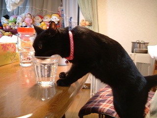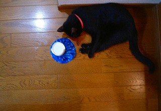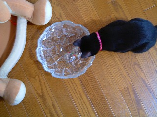 水も大嫌いでお風呂にも入ったことがないので、少し水に親しんでもらおうと、夏らしいガラスの鉢に水を入れて浮き玉を浮かべてみたけれど、水飲み場としては好評で、遊びながら水を飲むという悪い癖をつけてしまった。